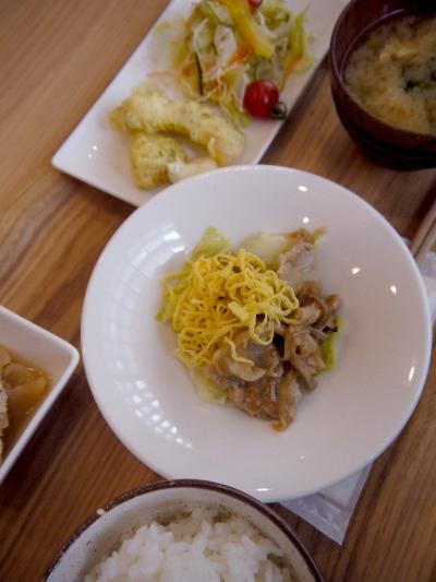 この日は、メインはゆでキャベツと豚もも肉の炒めもので、他にイカの磯辺揚げ、厚揚げと大根の煮物、味噌汁、ご飯、そしてドリンクから成る。