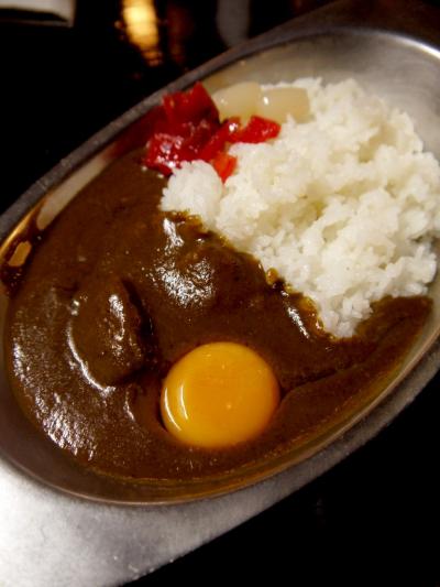 当店のカレーは、生卵が落としてあるのが特徴。混ぜていただく。