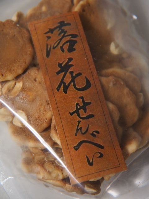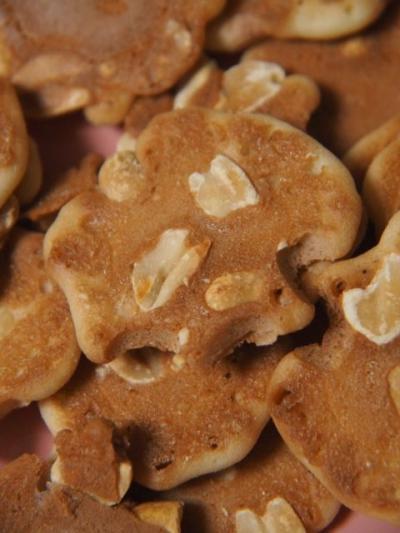 落花生入りで、甘めの煎餅のサクサク感に、落花生のポリポリ感が加わる。