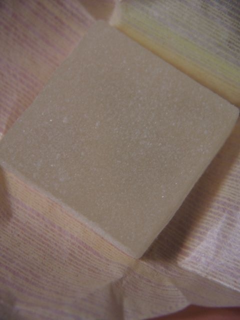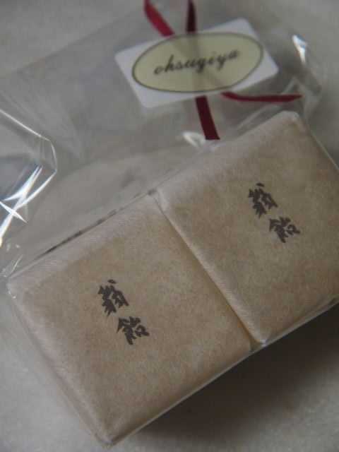 表面に寒梅粉を塗す事で、指で摘まんでもべた付かない様になっている。