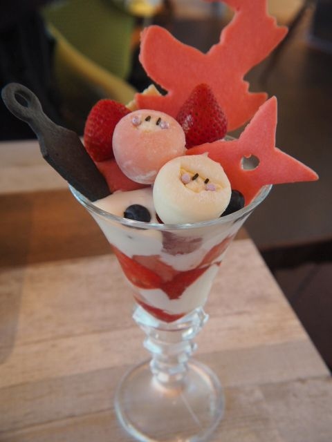 名古屋城の金の鯱をイメージしたパフェとの事だが、どちらかというと、忍者をイメージしたものが多い。