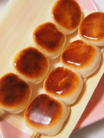 パッと見には餅粉を団子にして串に刺したものの様だが、実際には白餡を団子風にして表面に焼き目を入れたもの。
