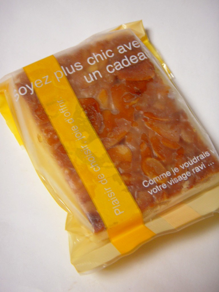 比較的薄めのクッキー部に、アーモンドスライスを分厚く重ねている。