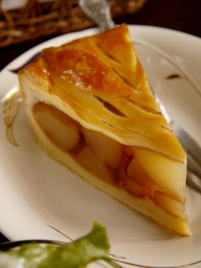 一般的なアップルパイは、焼いている内にパイ生地と中のリンゴとの間に隙間が出来てしまい、スカスカ感が否めない。しかし当店のはリンゴの切り身をゼリーで固めた上でパイ生地に入れている為、隙間が一切無い上、分厚く作る事に成功。ボリューム感溢れるアップルパイに仕上がっている。- 旅行時期