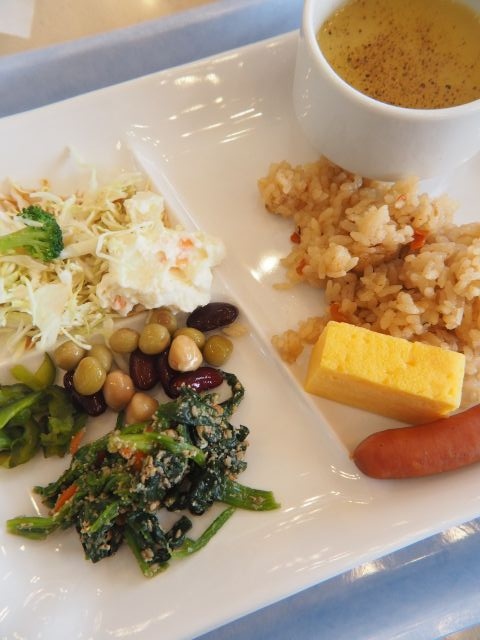 ご飯、炊き込みご飯、サラダ、おかず、スープ、パン等が提供されていた。一応食べ放題