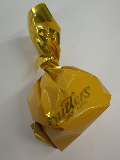 その名の通り、チョコレートが包装紙に捩じる形でラッピングされている。