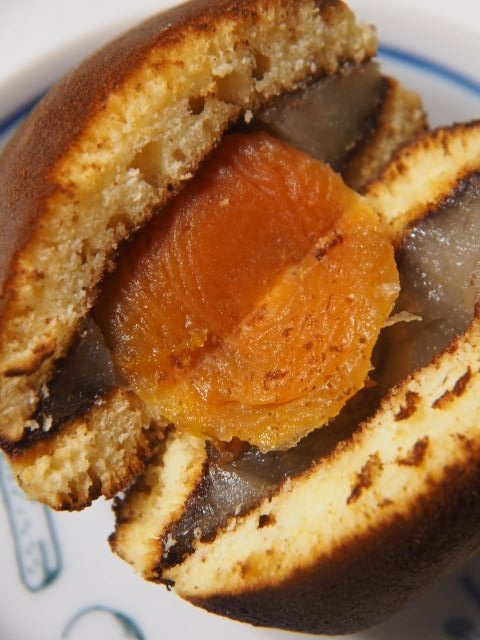 餡は、白手亡豆庵にあんずコンポート入りのものをつかっている。