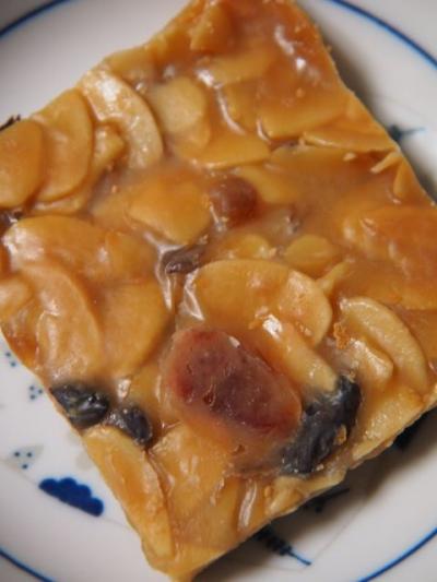 アーモンドスライスの他に、レーズン、オレンジ、パイナップル等のドライフルーツも使っている。