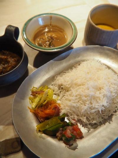 カレーはそれぞれ個別の容器で提供され、ライスも別の皿に盛られて提供される。混ぜて食すのも、個別に食すのも可能。辛さはあるが、激辛ではない。スパイスの香りがしっかりと感じられる。- 旅行時期