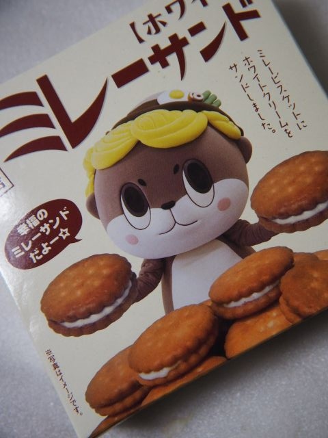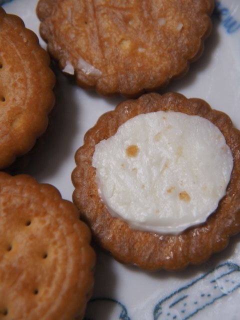 高知銘菓のミレービスケットで、ホワイトクリームを挟んだもの。