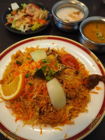 ビリヤニは数種類から選べ、ラムのがあったので、それを当たり前の様に選択。ラムは骨付きのものがトッピングされ、その名の通り、柔らかく、美味だった。事前に聞いていたが、とにかく半端無い量が提供される。一般的なレストランの2倍強提供されたのではないか。バスマティライスの山で、思う存分食べられた。野菜も結構たっぷり。オレンジが添えられていたのはインド料理店ならでは。- 旅行時期