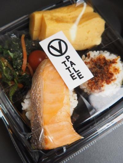 だし巻き玉子、おにぎり、鮭、ほうれん草胡麻和え、ミニトマトから成る。