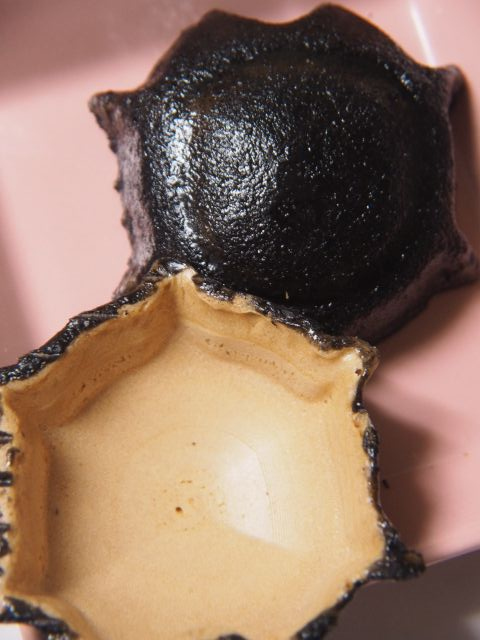 中が黒っぽいので、小豆餡かと思ったが、イカ墨入りのアーモンドダマンドで、当然ながら小豆とは全く別の味わい。