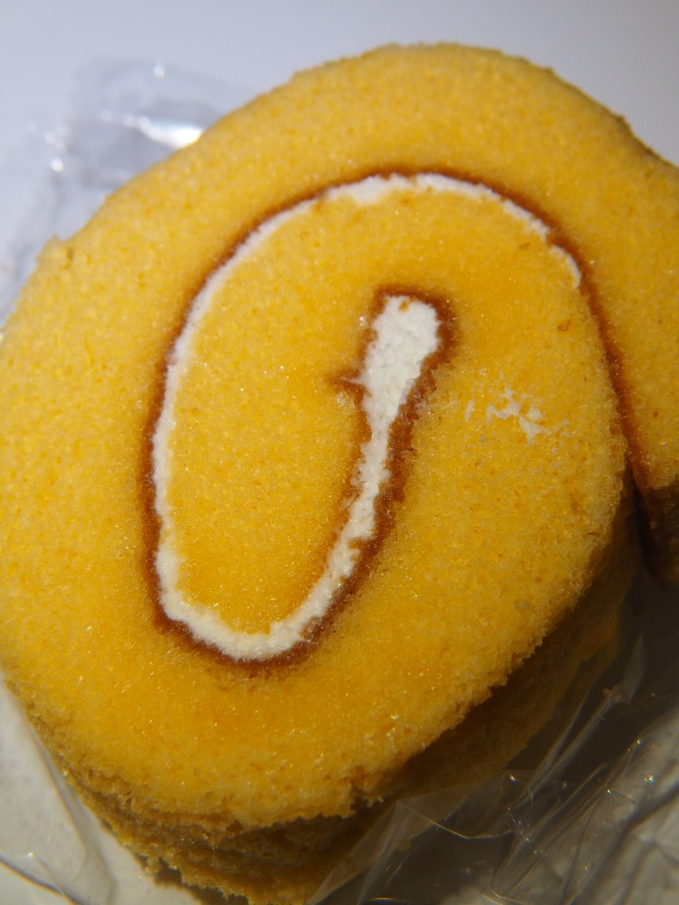ミカンの香りがガンガン伝わって来るのかなと思いきや、そうではなく、ほぼ普通のロールケーキ。