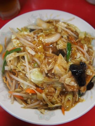 揚げそばは、揚げた麺に餡を掛けたもの。