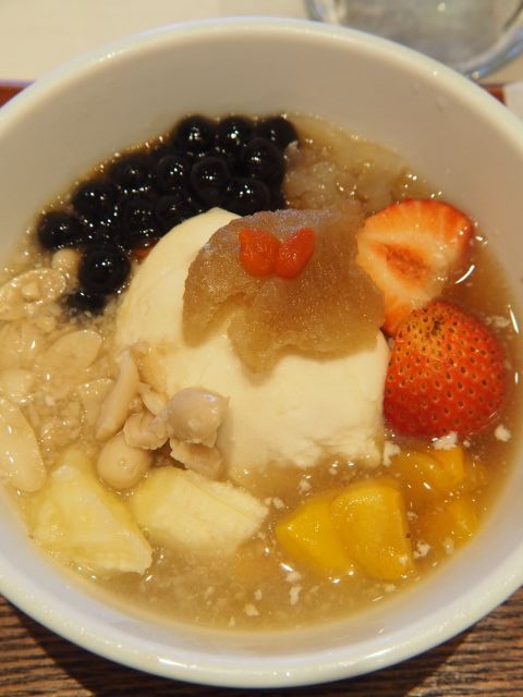 豆花は、豆腐とゼリーを足して、豆腐寄りに割った感じのデザート。デザートといっても、甘さは殆ど無く、滑らかな豆腐を食している感じ(事実、中国ではデザートではなく食事としても食べられるらしい)。