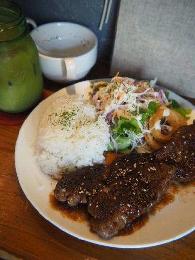ステーキはおろし醤油ソースがたっぷり掛かっていて、和風の味わい。肉は圧倒される程の厚みはないが、ステーキと名乗れるボリュームにはなっていた。