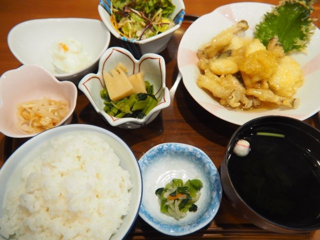 日替り昼時ランチ(スズキの天ぷら梅おろしソースがけ)は、ランチの1種。