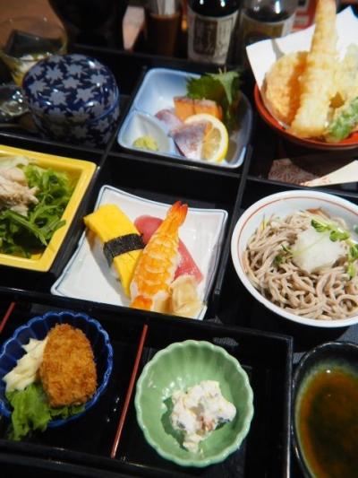 刺身2種、握り2貫、二八蕎麦、天ぷら盛り、茶碗蒸し、小鉢3種、サラダ、デザートから成り、その名の通り彩りよく盛り付けられている。刺身・天ぷら・小鉢の内容は、その日ごとに異なるらしい。