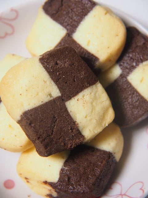 その名の通り、バタークッキーとココアクッキーを組み合わせ、チェスボードっぽくした生地を焼き上げている。