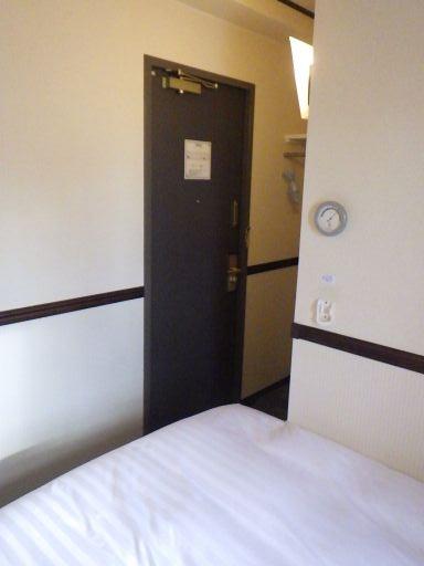 客室のカギはカードキー式になっている。その場合、東横インでは会員カードがカードキーになっていたが、ここでは会員カードの有無に拘わらず、専用のカードキーが手渡された。- 旅行時期