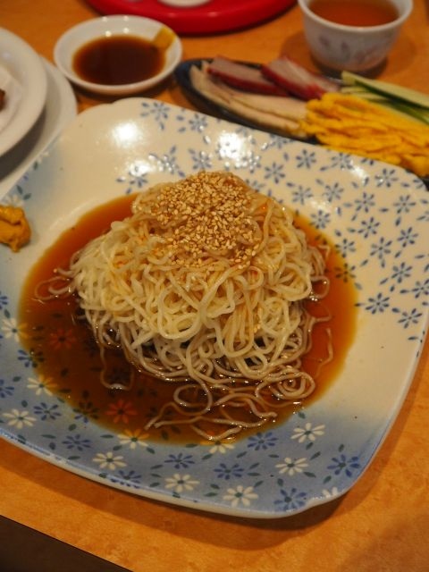 麺は中程度の太さで、胡麻が振り掛けてあった。下のタレは、酢の風味が抑え気味で、あっさりとしていた。