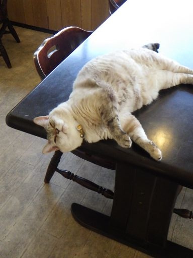 猫カフェではないが、店主が飼っている猫が自由に徘徊したり、テーブルに寝そべっていたりするので、猫が嫌い、もしくはアレルギーがある者は利用し辛い店かも知れない。