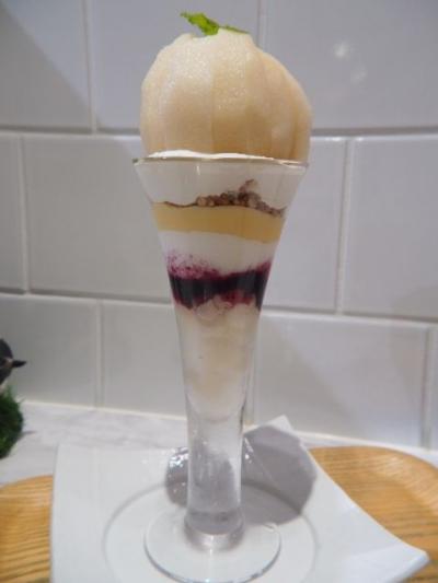 「パフェ」と名乗っているが、アイスクリームは使っておらず、生クリームやヨーグルトを使っている。梨がひんやりとしていて、しかも瑞々しいので、それがアイスクリームの代わり、という事か。- 旅行時期