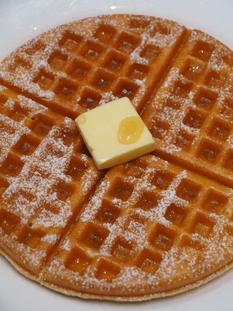 内容は、ワッフルと、紅茶(コーヒーも選択可だが、当たり前の様に紅茶にした)。ホットティーの場合、ポットで提供される。- 旅行時期