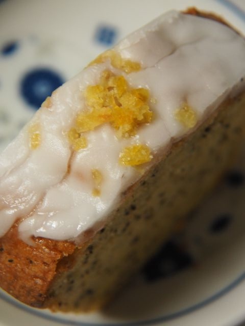 茶葉を混ぜ込んで焼き上げたパウンドケーキに、シュガーフロスティングを施し、刻んだレモンピールをトッピング。