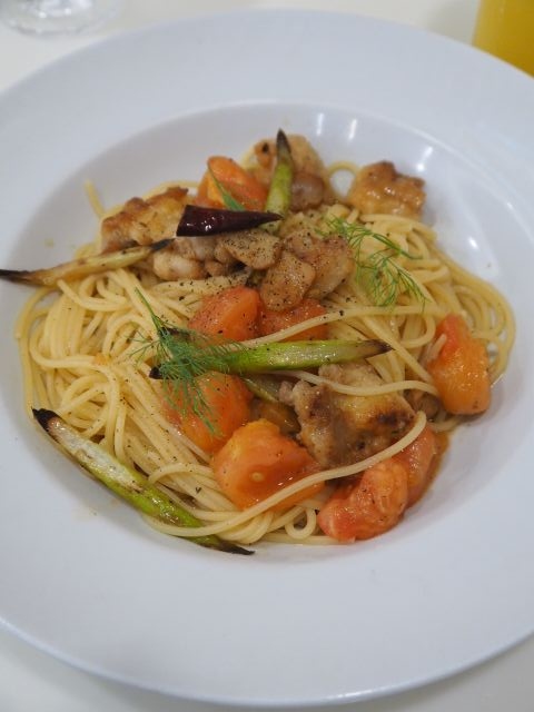 ジューシーな若鶏と、トマトの甘さと酸味を堪能出来るパスタ。