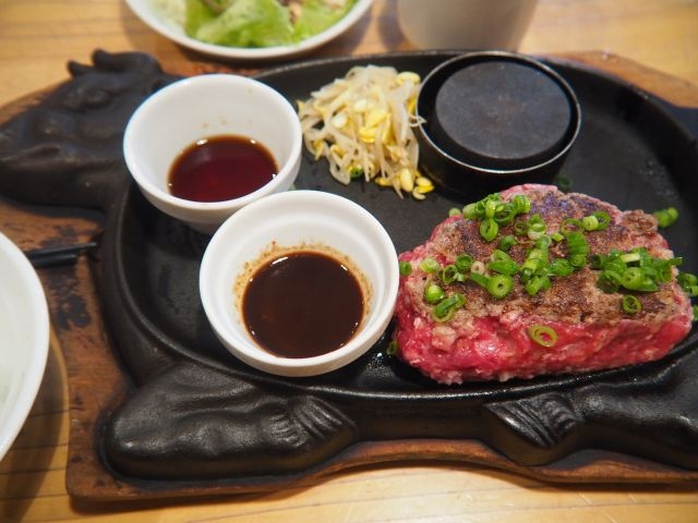 無論、そのままでは食べられないので、客がステンレス製の箸で切り分けて、ペレットで少しずつ焼きながらいただく。焼肉感覚で食べるハンバーグ、といったところ。- 旅行時期