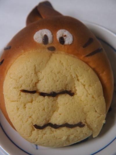 カスタードクリームパンに、部分的にクッキー生地を被せて、キャラを描いている。