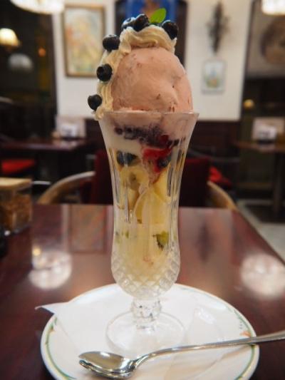 同店ではキウイパフェは2種類あり、グリーンキウイとサンゴールドキウイから選べた。グリーンのキウイはこれまで何度も食しているので、今回はあまり食べた覚えが無いサンゴールドキウイを選択。