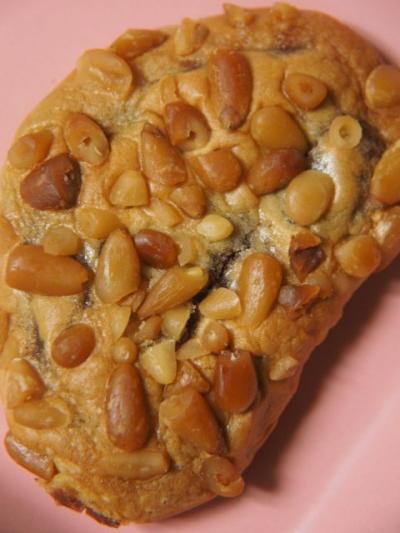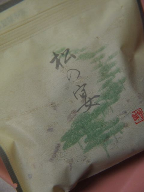 基本は小豆餡の平べったい饅頭だが、表面に松の実をこれでもか、と塗してあるのが特徴。