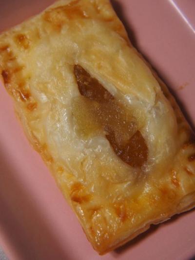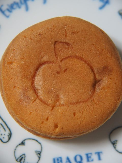 形状は、二周り小さい大判焼きといった感じ。表面にリンゴの絵がエンボス加工されている。