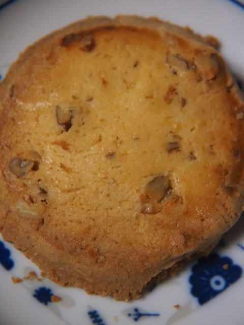 柔らかめのクッキーに、ねっとりとしたほろ苦のヌガーと、胡桃のポリポリ感が加わる。