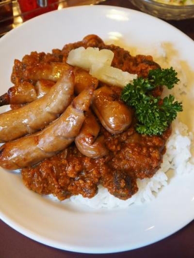 通常は750円だが、ジャーマンソーセージをトッピングしたので、200円プラスに。200円だから、ソーセージが1、2本乗っているんだろうと思っていたら、4本も乗っていた。ドライカレーを含めて、肉を思う存分味わえる一皿に。- 旅行時期