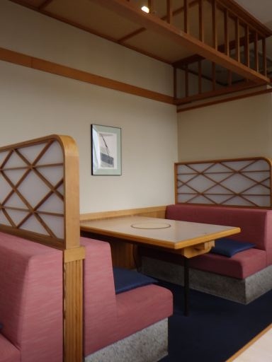木目を活かした内装は、宮島の厳島神社をイメージしているという。