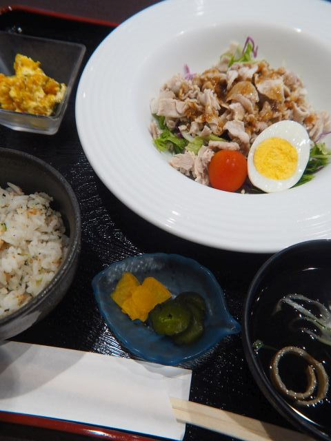他に、小鉢(この日はカボチャサラダ)、香の物、ご飯、汁物から成る。- 旅行時期