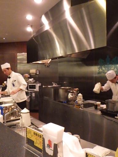 広大というほどではないものの、それなりに広い。席数もそれなりにある(19席)。カウンター席とテーブル咳があるが、湾曲したカウンター席がメインのようである。