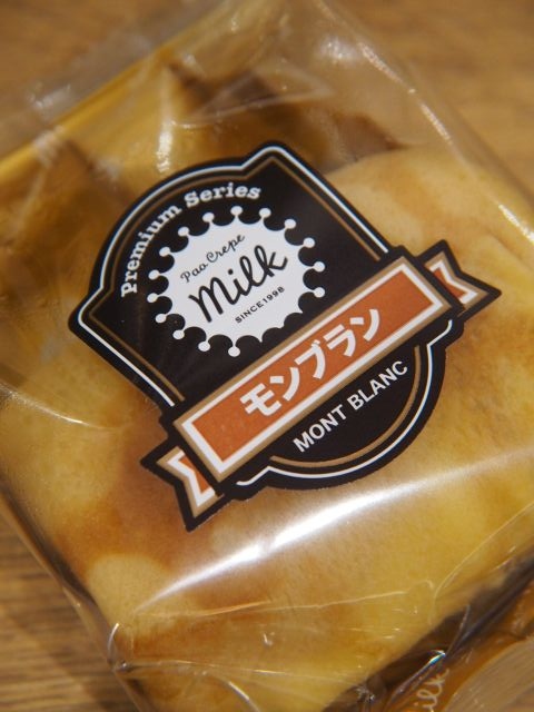 薄い、モチモチのクレープ生地で、マロンクリームと、栗一粒を包んでいる。
