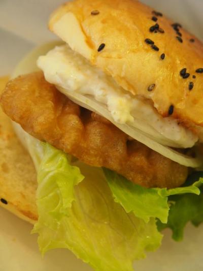 Agetai Burgerとは、バンズの間に、鯛の揚げ物、レタス、そしてタルタルソースを挟んだもの。- 旅行時期