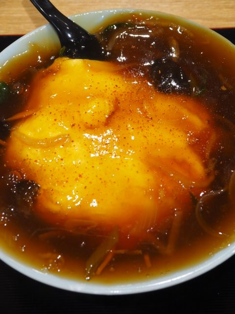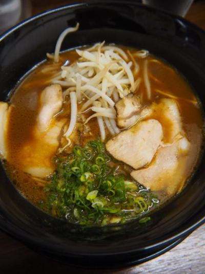 広島ラーメンは豚骨醤油スープが基本だが、タレにより、黒に近い色のスープに仕上がっている。一口軽く飲んだだけでも、タレの甘辛さを存分に味わえる。麺を黒っぽく染めてしまう程の黒さだが、味付けは見た目程濃くはなく、すんなりと飲める。- 旅行時期
