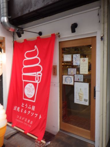 立ち飲み屋として営業しているのは17時からで、それより前は豆腐屋によるソフトクリームを販売している。