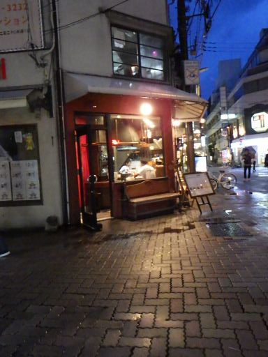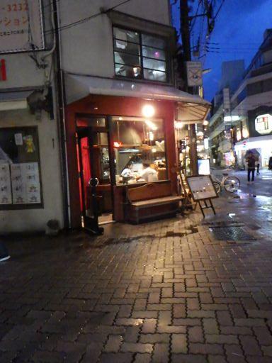 本通のアーケード街の一本北に走る道に面した小さな店。席はカウンターのみで、テーブル席はない。10人入ると満席になると思われる。