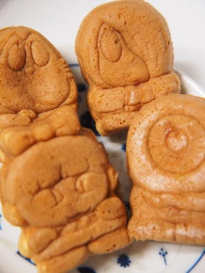 ゲゲゲの鬼太郎で登場するキャラクターの鬼太郎、ねずみ男、目玉おやじ、ねこ娘を模っている4種類の人形焼が1つのパッケージに。