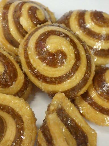 2色の生地を渦巻き状に巻いて、カットし、、1つ1つコマ(独楽)の様に成形して、油で揚げている。