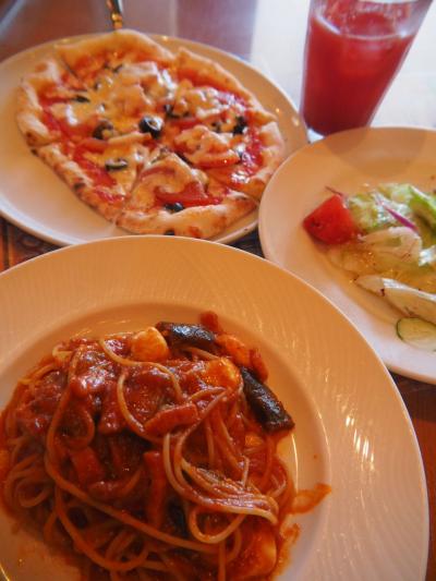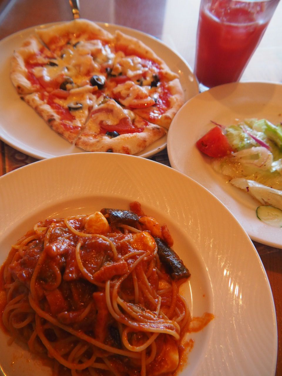 パスタ・ピザはメニューの中から自由に選べ、ドリンクもソフトドリンクから自由に選べるようになっている。- 旅行時期