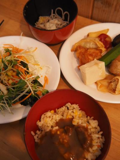 餃子、唐揚げ、炒飯、カレー、蕎麦、サラダ、筑前煮等、バイキングに於いては定番のメニューが揃う。